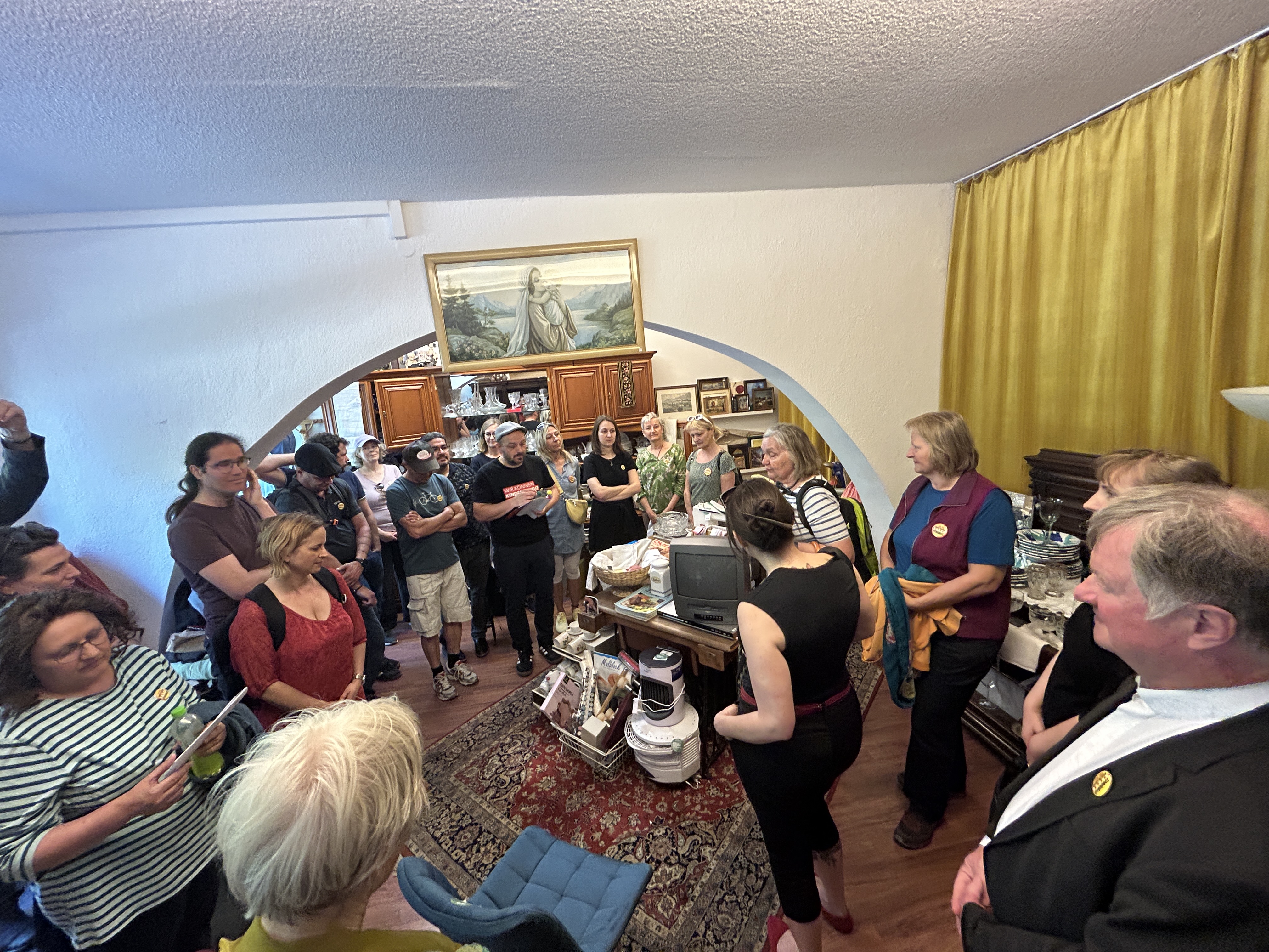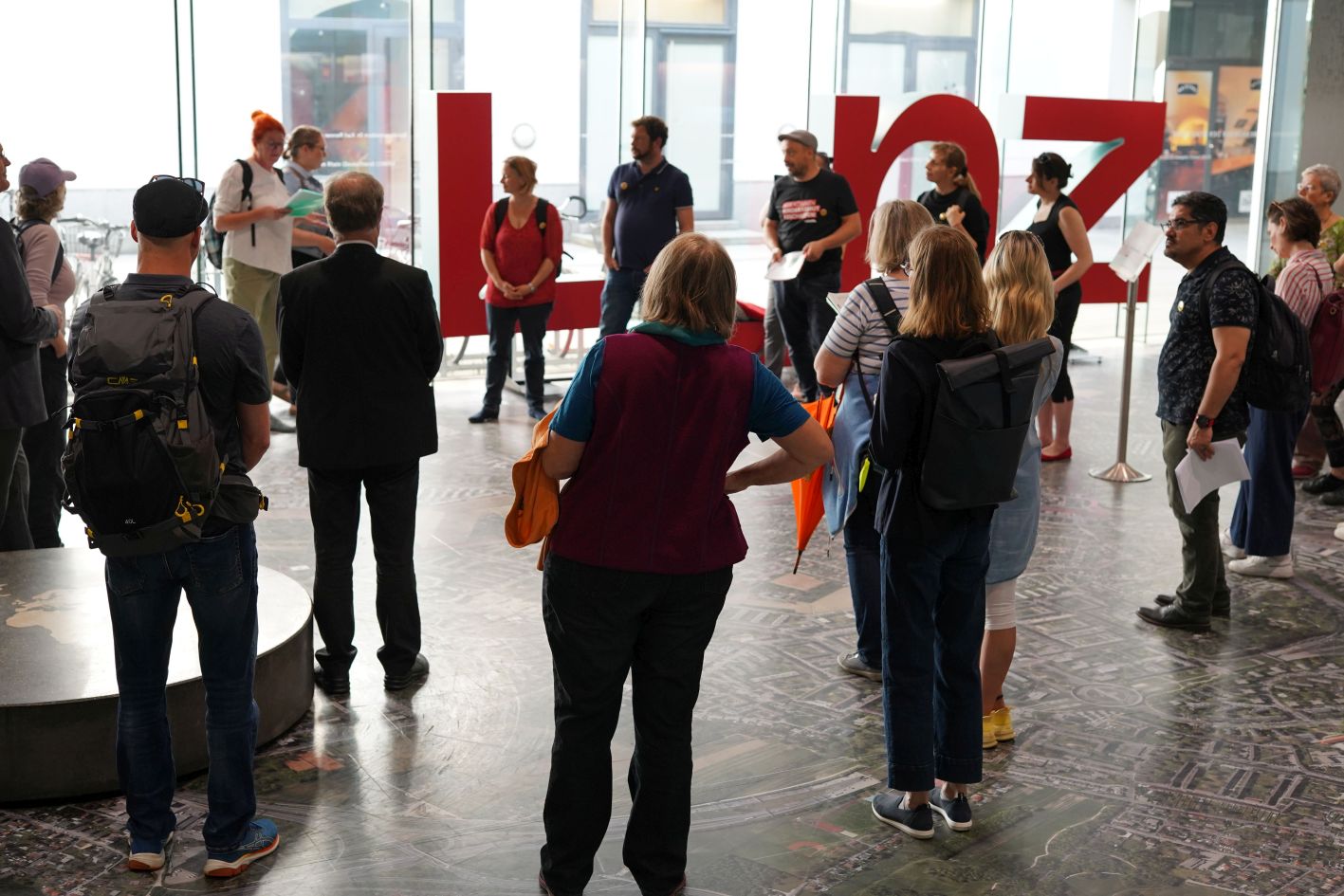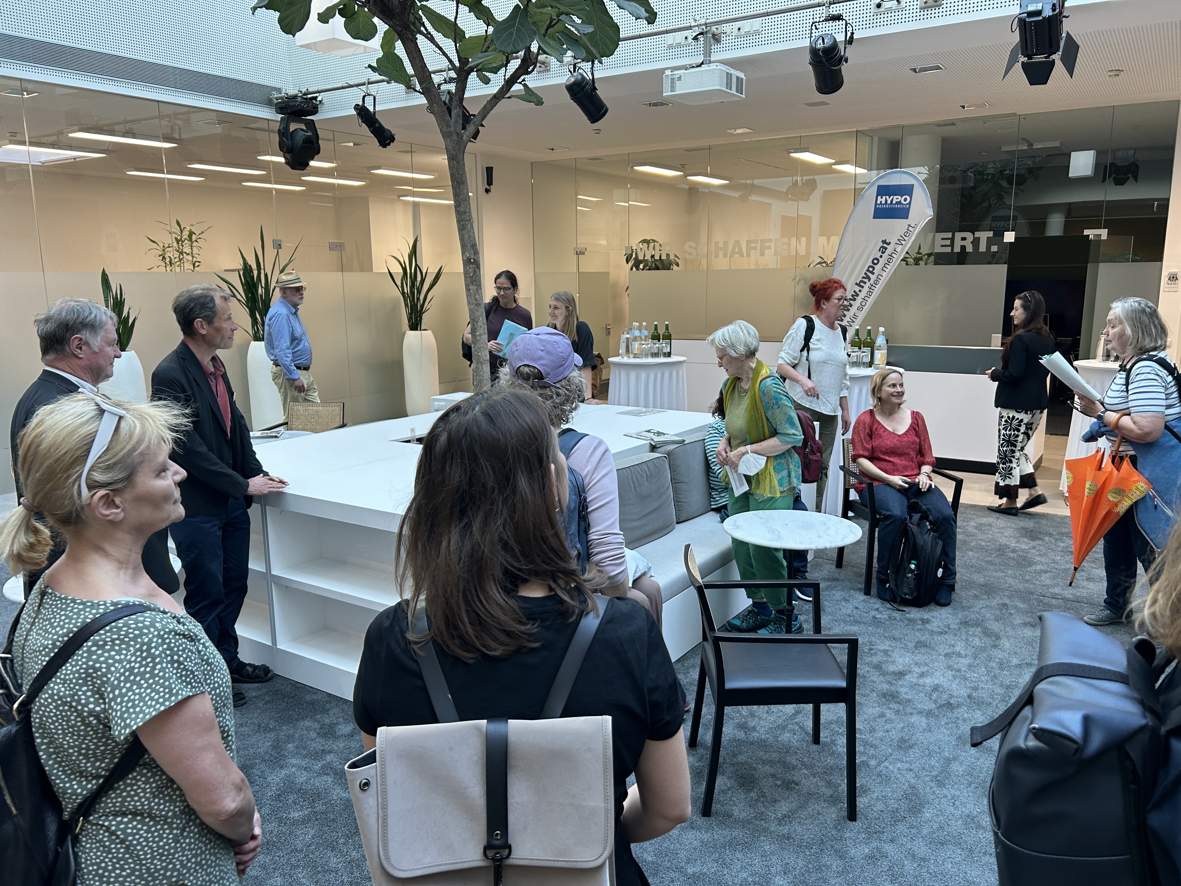 Austroguide Brigitte Schwarzlmüller-Binder führte uns durch die Linzer Innenstadt. Insgesamt nahmen 30 Teilnehmer:innen am Stadtrundgang teil. Mit dabei waren von Arbeitslosigkeit betroffene Menschen, Bischof Manfred Scheuer und Mitarbeiter:innen und Ehrenamtliche aus sozialen Organisationen. Martin Füreder und Monika Weilguni, beide im designierten Pastoralvorstand des Dekanates Linz-Mitte, waren sehr interessiert an den persönlichen Situationen der Betroffenen in ihrem Dekanat.