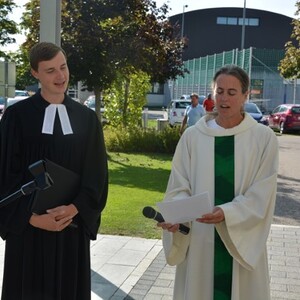 Unsere "Feldmesse" wurde ökumenisch - mit Mag.a Rebecca Mair und Mag. Johannes Blüher - auf der Wiese vor dem Altenheim gefeiert.