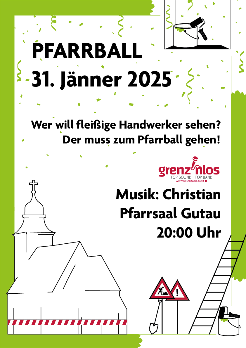 Wer will fleißige Handwerker sehen? Der muss zum Pfarrball gehen! Herzliche Einladung zum Pfarrball - wir freuen uns auf bunte, einzigartige und verrückte Verkleidungen!