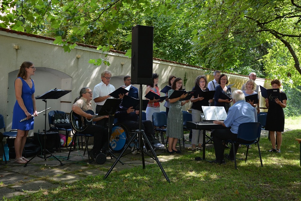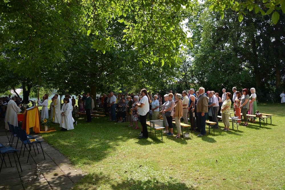 Das Patroziniumsfest des Hl. Jakobs konnte heuer bei strahlend schönem Wetter auf der Pfarrwiese stattfinden. P. Carlos leitete den Gottesdienst gemeinsam mit Monika Greil-Payrhuber und Barbara Greinöcker. Der Chor ad Hoc unter der Leitung von Sigi Humenberger begleitete die Messe musikalisch, er hatte seinen ersten Auftritt nach dem Lockdown. Die Pfadfindergilde und die Pfadfinder stellten die Bänke und Tische, sorgten für Brötchen mit Aufstrich, Getränke und Bratwürstel mit Sauerkraut als Pilgerjause. So gelang ein erstes fröhliches Sommerfest nach den Einschränkungen der Pandemiezeit.