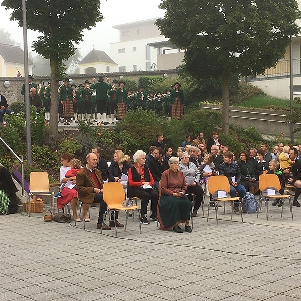 Erntedank 2020 wurde mit einem feierlichen Gottesdienst am Kirchenplatz gefeiert. Kirchenchor und  Musikkapelle gestalteten bzw. umrahmten die Feier. Die Landjugend verzierte traditionell die Erntekrone - ein Sinnbild von Leben und Dankbarkeit.  Schließlich übergab Bgm. Gebeshuber P. Gabriel Ertl einen Beitrag der Gemeinde für die Kirchensanierung.