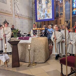 Wunderschön umrahmt wurde das Ganze sowie auch der gesamte Gottesdienst von unserem FaGoDi-Chor, den Musikern Bernd am Klavier, Peter an der Gitarre und unserem hervorragenden Schlagzeuger Linus: alles unter der Leitung von Rainer Lanzerstorfer (Gitarre und Gesang) - ein herzliches Dankeschön an dieser Stelle für euren Elan!