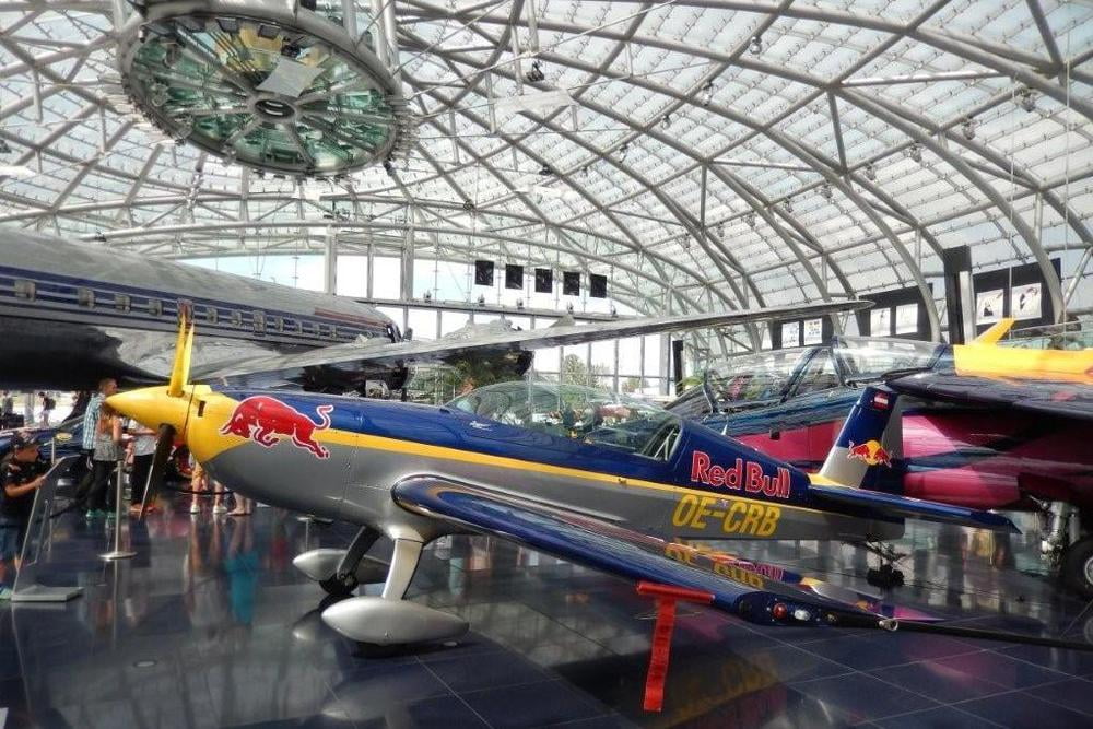Voll Erwartung setzten wir unsere Besichtigungstour zum Hangar 7 fort. In einer riesigen Halle sind eine Sammlung historischer Flugzeuge, Helikopter und Formel-1-Rennwagen von Sebastian Vettel und David Coulthard ausgestellt. Jährlich 200.000 Besucher zieht diese 2003 eröffnete Ausstellungshalle an.
